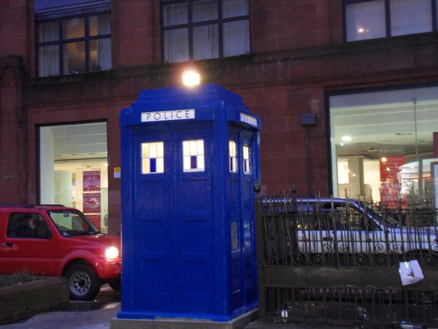 Wilson Street, Merchant City. Type of Grant: Architectural Detail Status:The works currently on site encompass the repair of the re-inforced concrete structure of the box, replacement of damaged metal six pane windows, reglazing, restoration of the four ‘Police’ call box signs to the lintols, repair to working order the original lantern light, re-instate the original emergency call box plate and grille to former speaker phone and re-wiring of the box so as to illuminate the interior and the lantern. On completion the box will appear as an authentic, restoration of an original Glasgow police box, the last to be left in its original and traditional location above a public convenience, in the city. The box will be returned to its original colour, a dark grey/blue, reminicent of the Dr. Who ‘TARDIS’, although the red colour it currently displays had in fact also been used in the city to unify the emergency services.